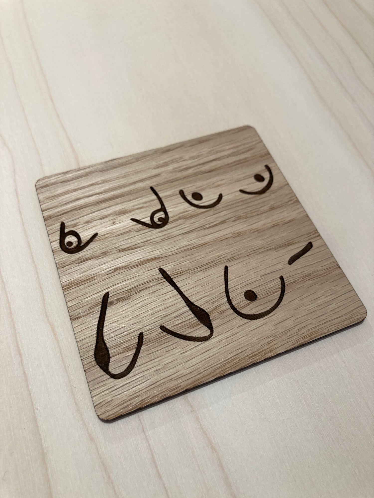Glasbrikker med bryster til at stille yndlingskoppen med morgenkaffen på.