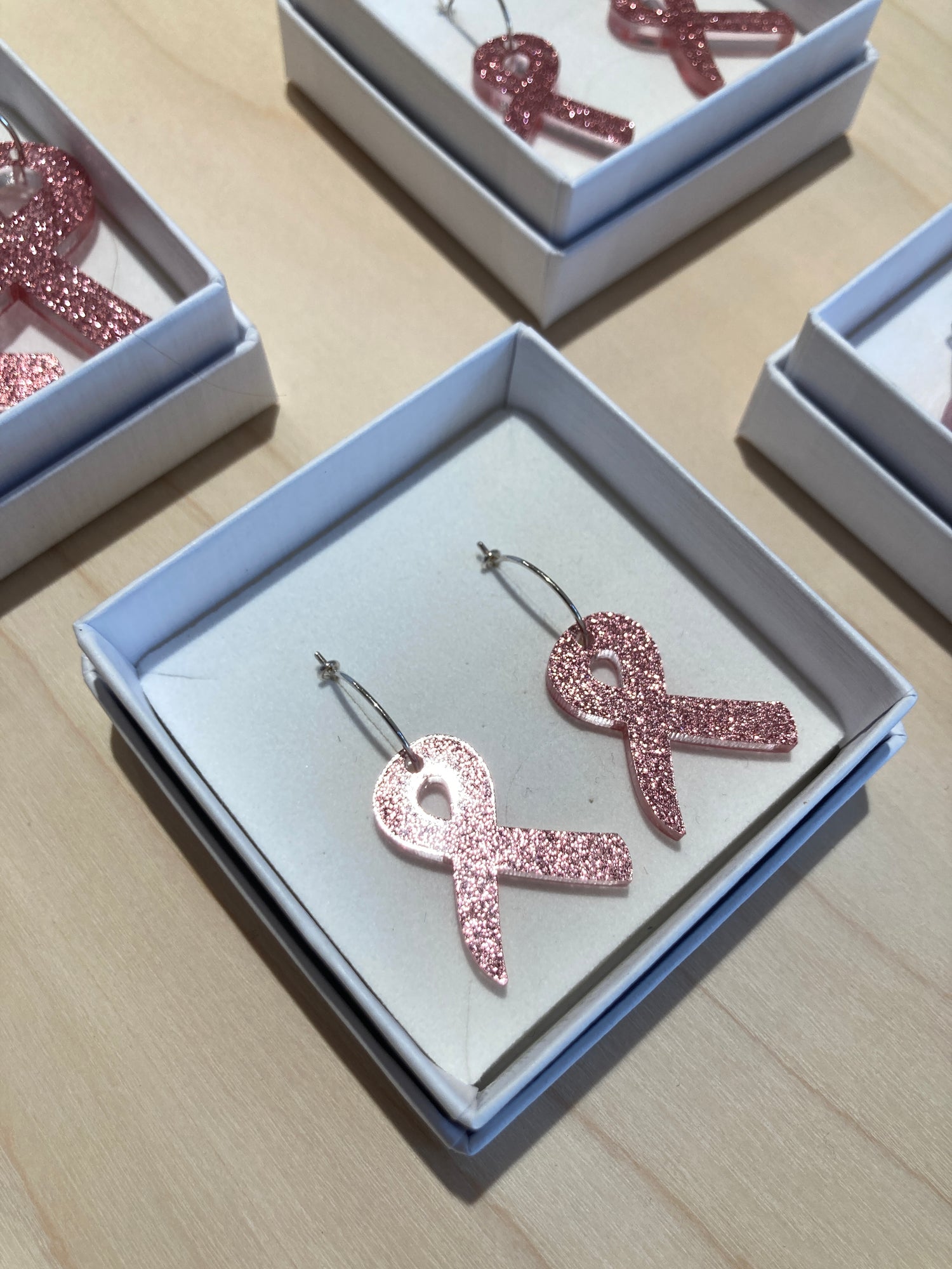 Støt Brysterne øreringe - creolere i lyserød glimmerakryl rosafarvet spejlakryl og Sterlingsølv